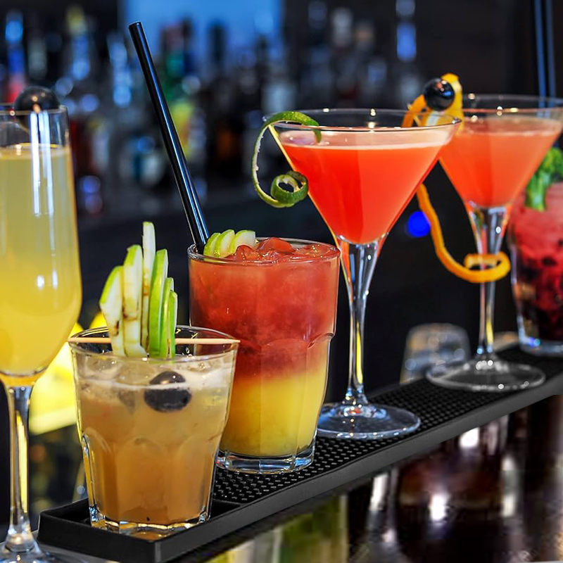 Barová podložka slouží jako pracovní plocha pro barmany, na odkládání barových pomůcek nebo jako odkapávač umytých šejkrů. Je vyrobena z pružné černé pryže a má rozměr 8,5 x 60,5 cm. Vhodná také na barový pult jako výdejní místo pro servis.