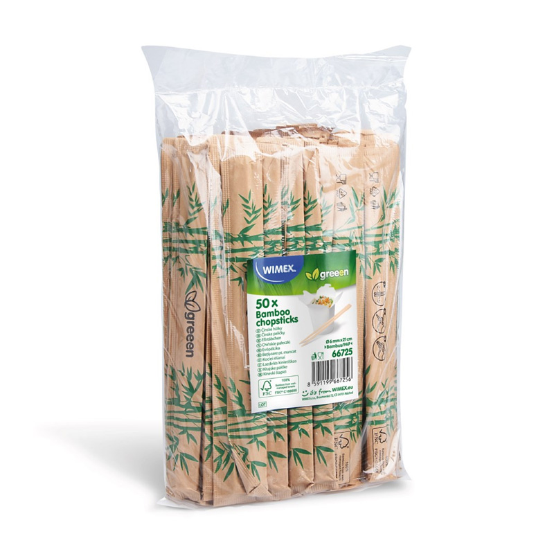 Čínské hůlky vyrobené z bambusu o délce 21 cm. Praktické jednorázové jídelní hůlky z ekologického materiálu jsou vhodné pro čínské restaurace a bistra, street food, sushi bary i pro domácí použití. Balení obsahuje 50 párů hůlek a každý pár je higyenicky zabalený do papírového obalu. Hůlky jsopu vyrobené z biologicky rozložitelného materiálu a díky tomu představují skvělou ekologickou alternativu k plastovým příborům. Povrch hůlek je hladký, příjemný do ruky a zajišťuje pohodlné a bezpečné stolování.