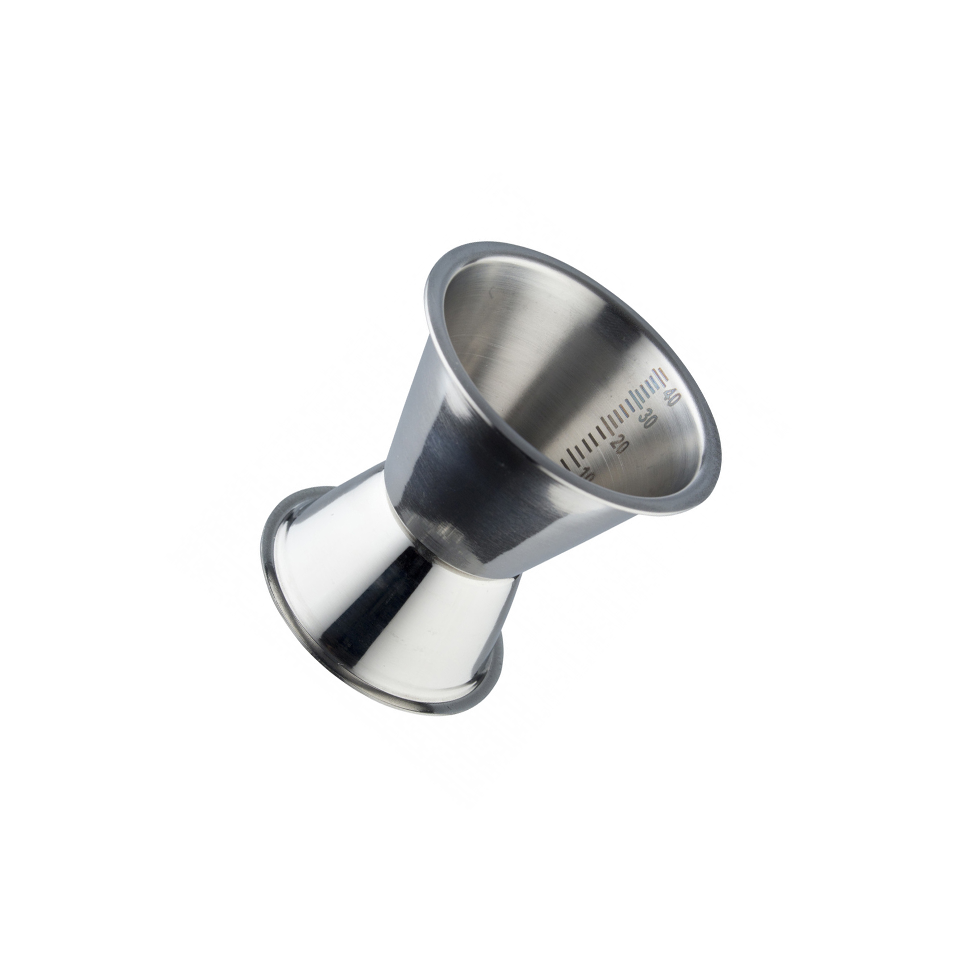 Barová odměrka nebo také jigger je pro správné odměření a dávkování alkoholu nezbytná věc. Dva různě velké kalíšky nadávkují tu správnou míru. Větší kalíšek plný po okraj 40 ml a menší plný po okraj 20 ml. V obou kalíškách jsou rysky po 2 ml. Barová odměrka je vyrobena v EU a to z kvalitního potravinářského nerezu.
