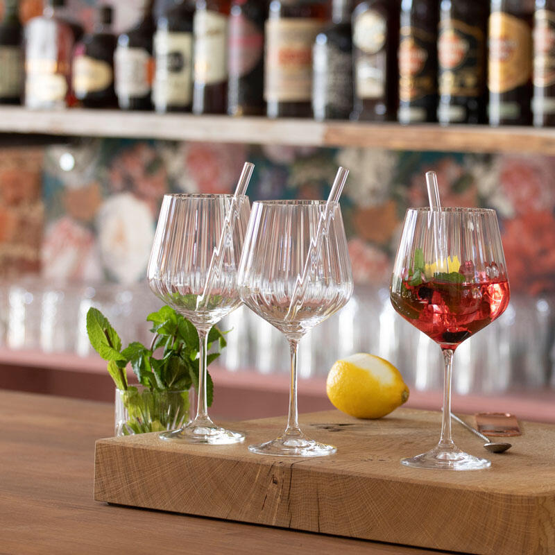 Dárkový Gin & Tonic set ze sklárny NACHTMANN, který obsahuje sklenice na Gin & Tonic o obsahu 640 ml a praktické skleněné slámky. Sklenice i brčka jsou vyrobené z bezolovnatého křišťálového skla, které je velice odolné proti rozbití nebo poškrábání. Set dále obsahuje kartáček na čištění brček, které je možné mýt jak myčce, tak řádně vydrbat právě tímto kartáčkem.