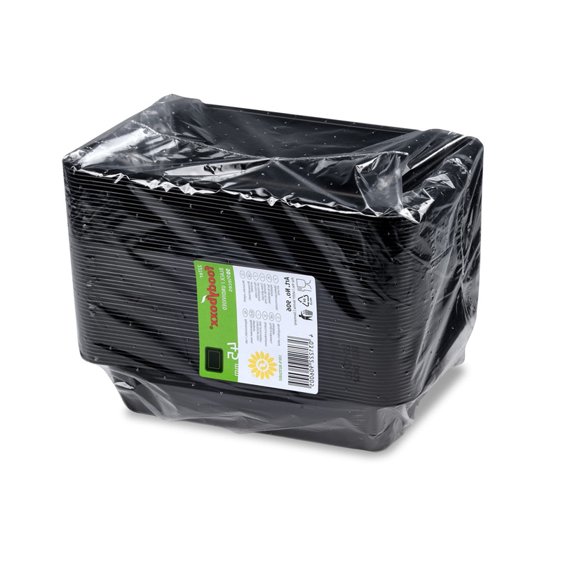 Praktická zatavovací miska na pokrmy sebou v černé barvě. Jedná se o nedělenou misku bez přepážky, která najde svoje uplatnění v jídelnách, restauracích, bistrech a kantýnách. Slouží k bezpečnému transportu hotového studeného nebo teplého pokrmu až na váš stůl. Vyrobeno z kvalitního recyklovatelného materiálu, který je vhodný do mikrovlné trouby. Miska je bez víčka, zatavuje se folií.