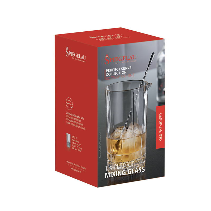 Míchací sklenice SPIEGELAU Perfect Serve Collection o objemu 630 ml se používá na míchané koktejly, které jsou složeny z lehce slučitelných surovin a nevyžadují tak míchání v šejkru. Tato jedinečná řada sklenic Perfect Serve byla vytvořena společnosti Spiegelau ve spoijení s inovativním, a ve světě uznávaným barmanem a majitelem baru Little Link, Stephanem Hinzem.