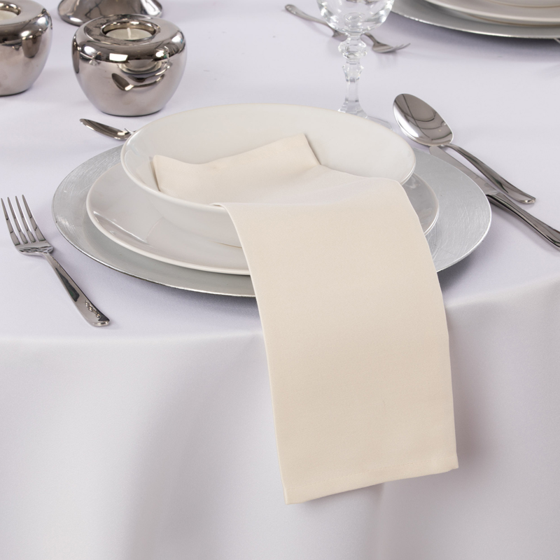 Ubrousek - příručník pro čísníky v rozměru 40 x 40 cm v krémové barvě je vyroben v provedení 50% polyester a 50% bavlna. Díky polyesteru je příručník stále barevný, neznehodnocuje se praním jeho barevnost a je také pružnější oproti 100% bavlně.