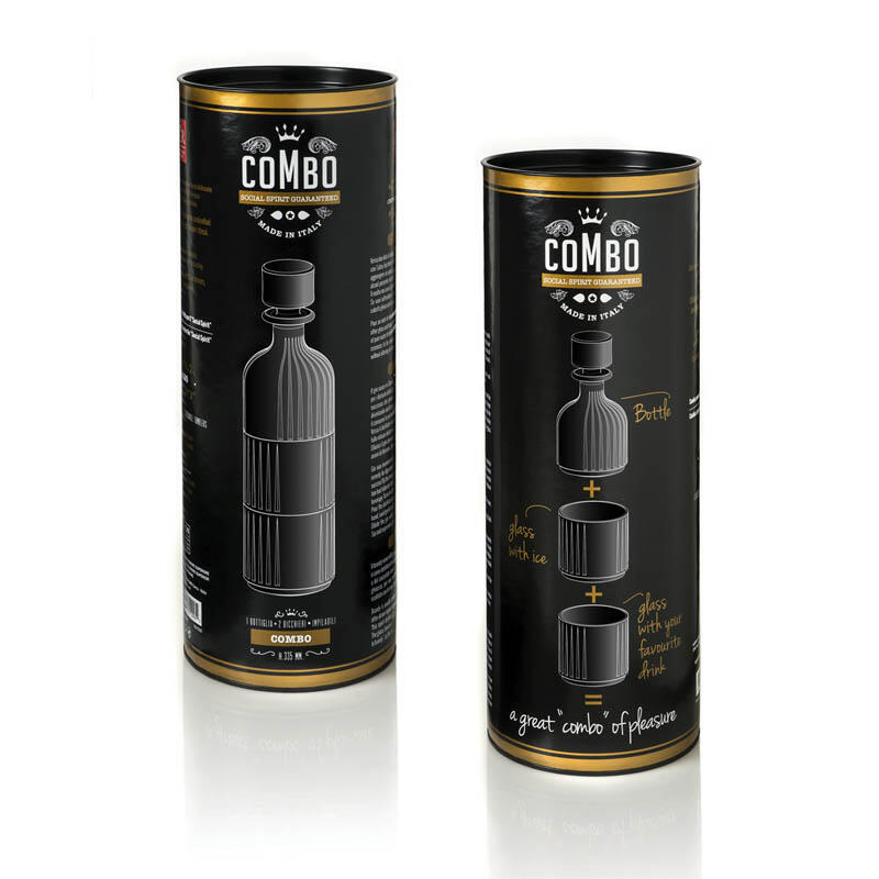 Skleněný set na whisky Combo, který se skládá z krásně zdobené "broušené" karafy o objemu 320 ml na whisky a 2 designových sklenic o objemu 367 ml z italské sklárny RCR CRYSTAL. Luxusní doplněk vaší kanceláře nebo domácího baru, který bude obdivovat každá návštěva.