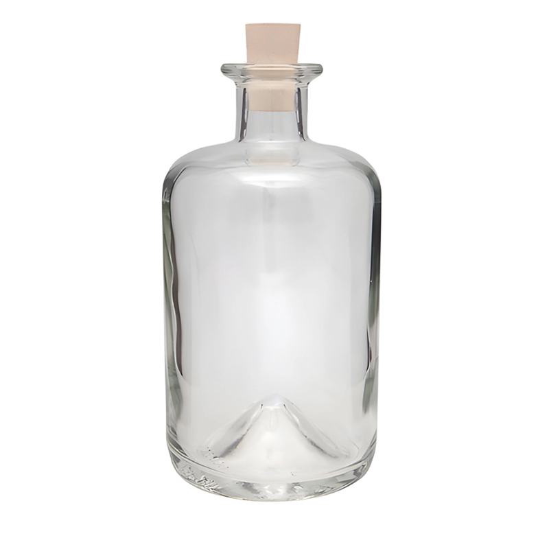 Skleněný flakon APOTHECARY o objemu 500 ml s korkovým uzávěrem. Tento jednoduchý skleněný flakon s přírodním korkovým uzávěrem je ideální volbou pro uskladnění extraktů, likérů nebo bitterů, ale také na sypké suroviny. Díky čistému tvaru, pevnému dnu a kvalitnímu čirému sklu působí elegnatně a hodí se jak do domácnosti, tak do gastronomických provozů.