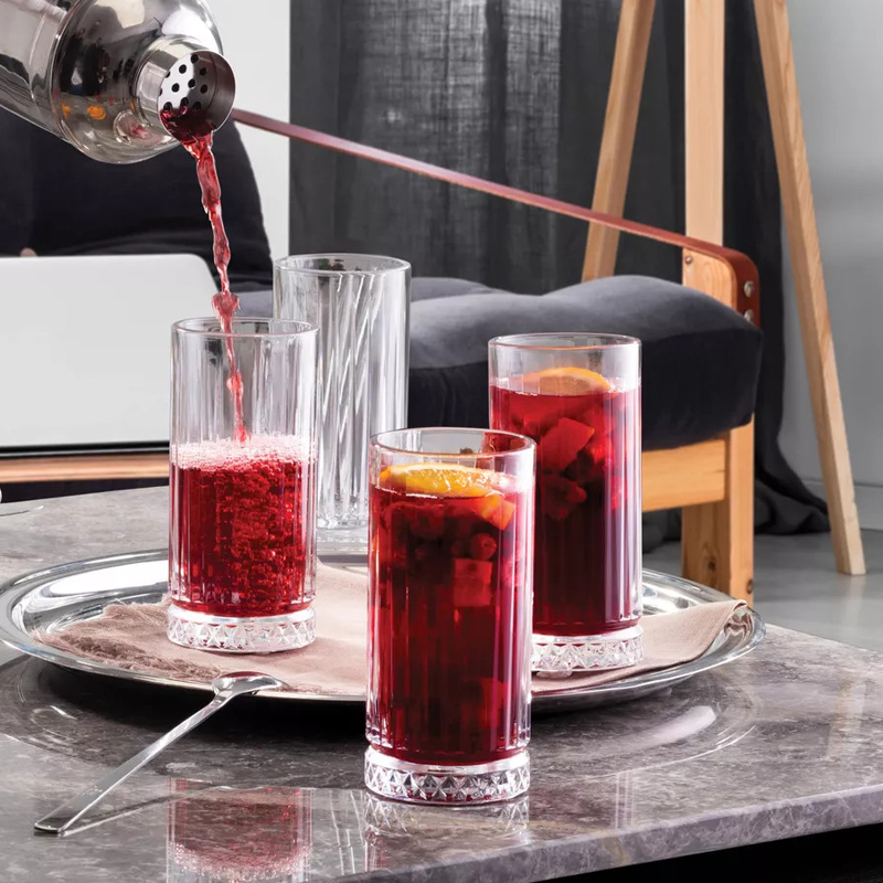 Sklenice je ideální pro servírování longdrinků, koktejlů i nealkoholických nápojů, jako jsou limonády nebo voda s ledem. Vyšší tvar poskytuje dostatek prostoru pro led i ozdoby, což ocení jak profesionální barmani, tak i domácí nadšenci.