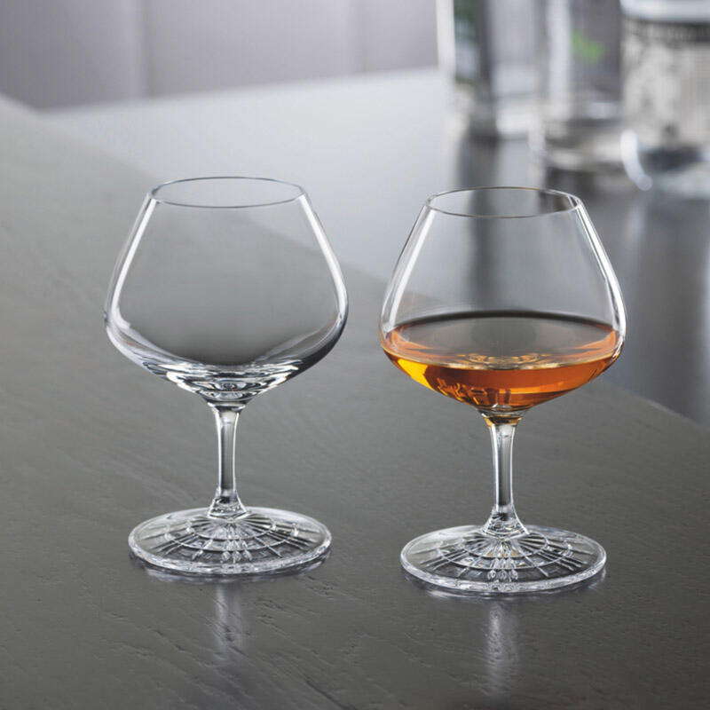 Sklenice na cognac SPIEGELAU Perfect Serve Nosing Glass. Luxusně vyhlížející sklenice z německé sklárny SPIEGELAU vznikla pod taktovkou předního mezinárodně oceněného barmana Stephana Hinze - majitele skvělého baru Little Link. Jak samotný název edice napovídá, jedná se o perfektně vypadající sklenici s uzavřeným tvarem a zdobeným dýnkem o objemu 205 ml.