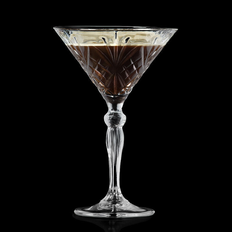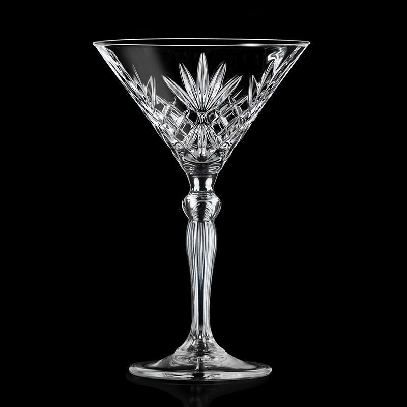 Zdobená lisovaná sklenice na Martini Melodia o objemu 210 ml s moderním designem "brusu" z italské sklárny RCR CRYSTAL. Stabilní sklenice s krásně zbobenou nožičkou vhodná pro servis krátkých nápojů jako například Martini nebo Daiquiri.