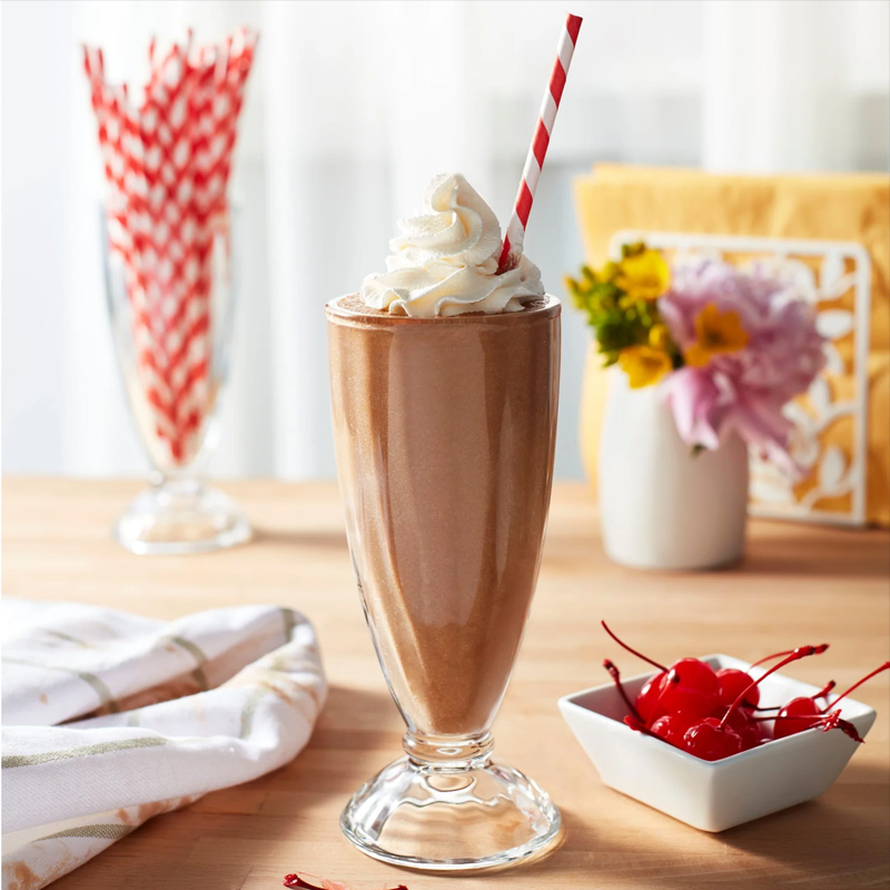 Sklenice na milkshake Libbey 5110 o objemu 355 ml. Všestranný pohár, který najde využití na milkshake, zmrzlinové poháry, smoothie a domácí limonády. Ikonická sklenice se silnou stěnou a stabilní základnou.