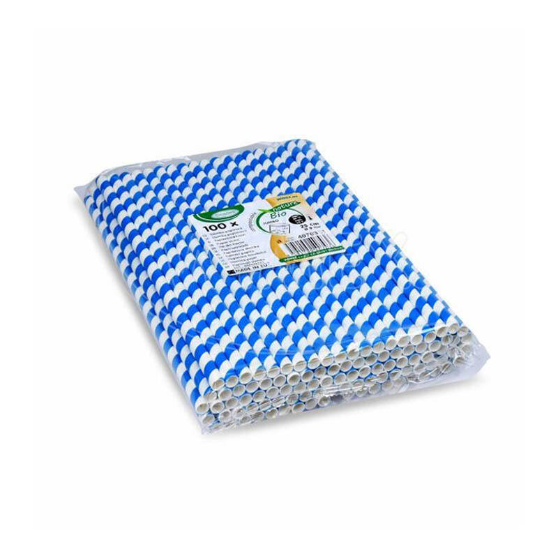 Papírová brčka nebo také slámky v modro/bílé barvě o délce 25 cm a průměru 8 mm jsou ekologická, šetrná k přírodě a biologicky rozložitelná. Brčka jsou vyrobena z papíru, neobsahují plasty a jsou biologicky odbouratelné a recyklovatelné. Fungují jako asi nejlepší alternativa k tradičním plastovým brčkům, vynikají svou pevností a stálostí při použití v drinku.