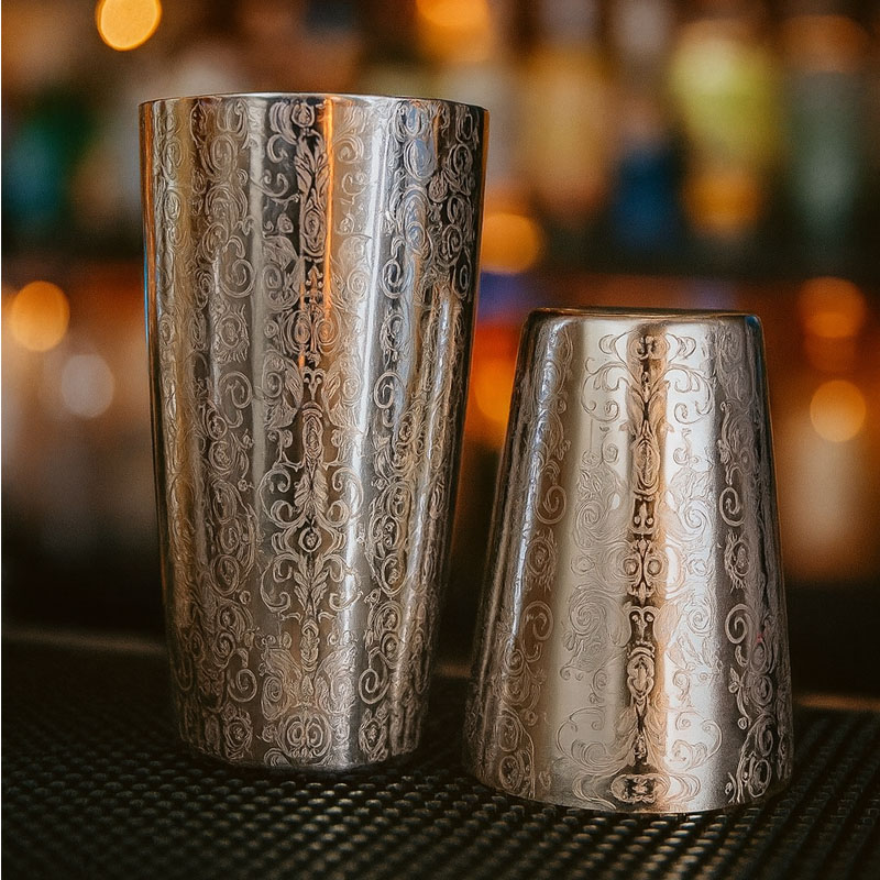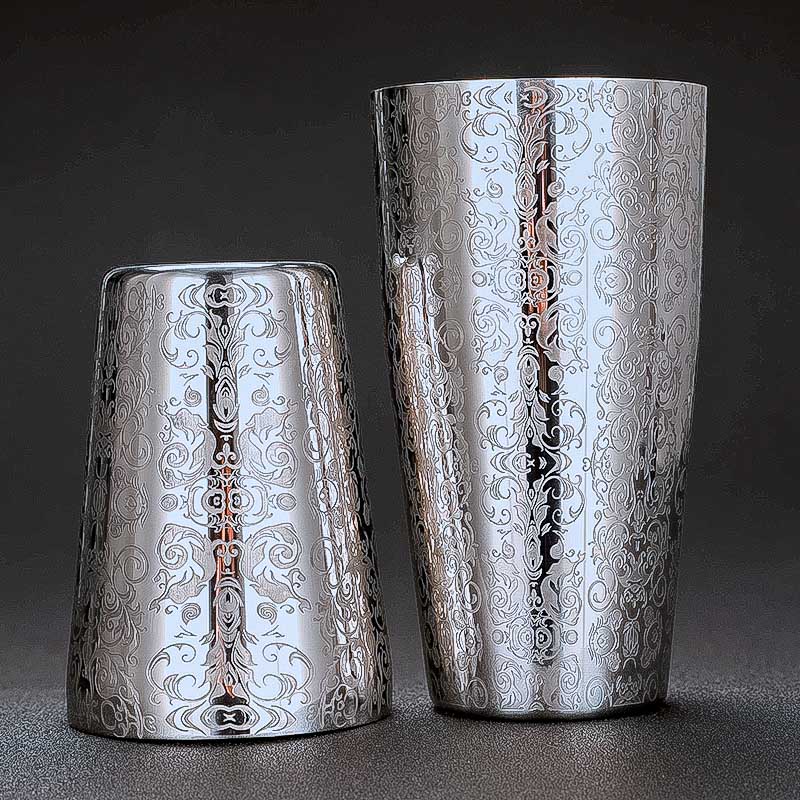 TATTOO set je prémiový nerezový set šejkrů z vysoce kvalitní nerezové oceli AISI 304, skládá se ze dvou šejkrů o velikosti 830 a 530 ml a je to ideální dvouporcový šejkr. Povrch šejkrů je leštěný s nevšením TATTOO vzorem.